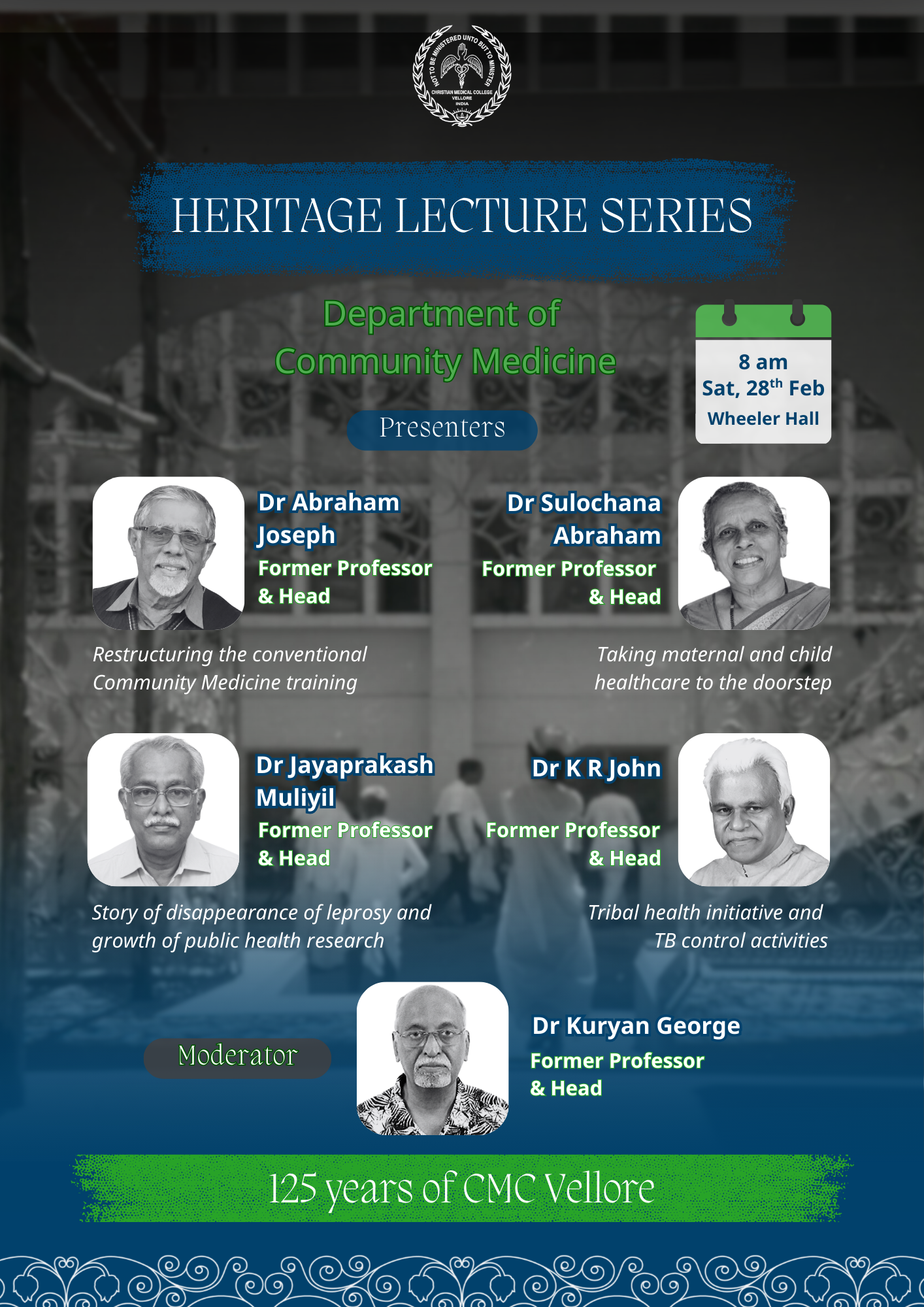 For discerning patients seeking an expert medical opinion they can genuinely trust, CMC Vellore delivers a wide spectrum of healthcare services under one roof – with integrity, compassion and excellence, the signature of close to 125 years of service in the spirit of Christ. Everyday, over 9000 patients from diverse communities near and far visit CMC Vellore, one of the countryโ€™s leading hospitals.
